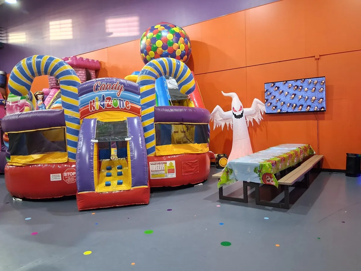 After jumping, you’ll head to your reserved table space for pizza, cake, and presents.